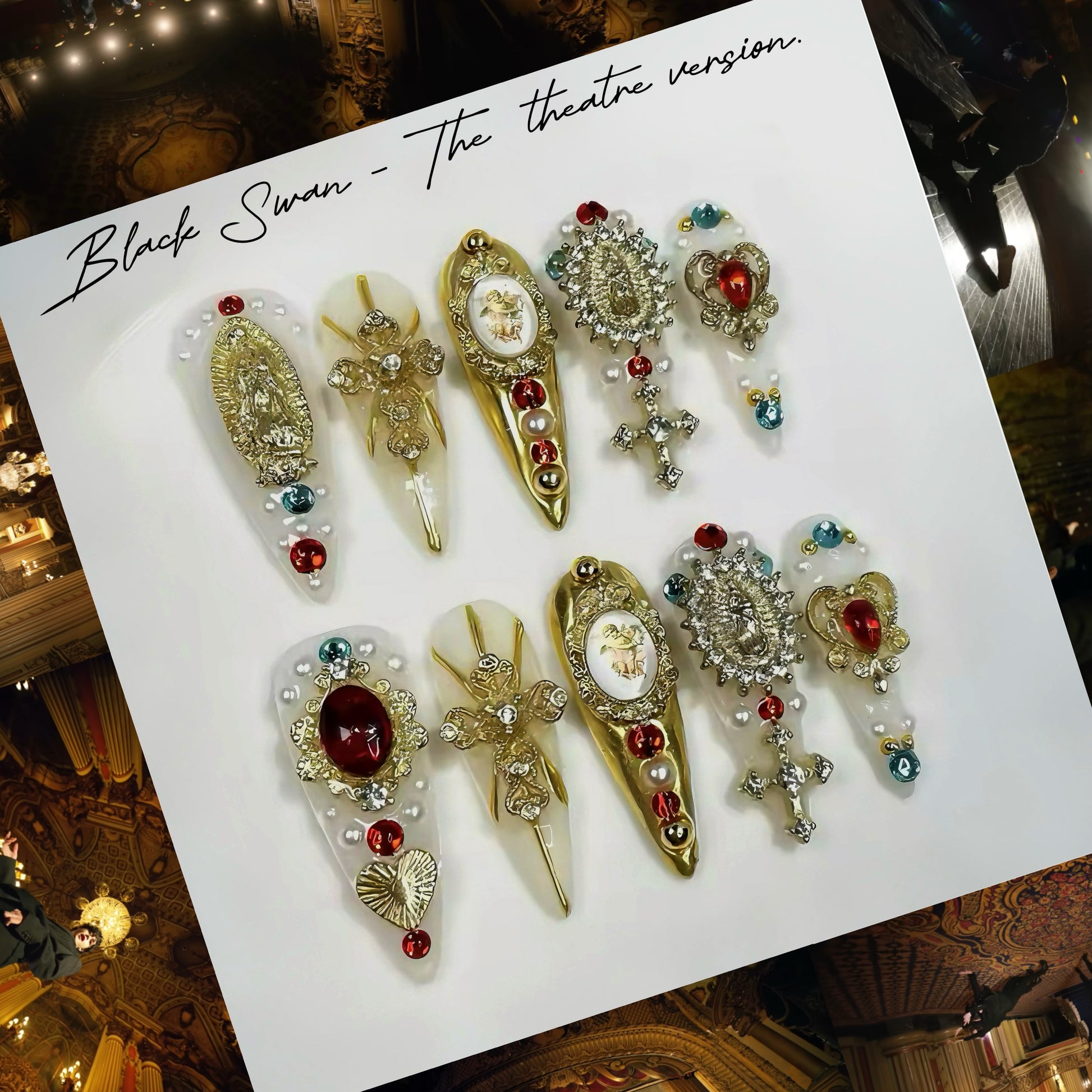 Black Swan is a handmade press-on nails set designed by yoonmi for Army and is part of the BTS collection ⋆.˚✮🎧✮˚.⋆