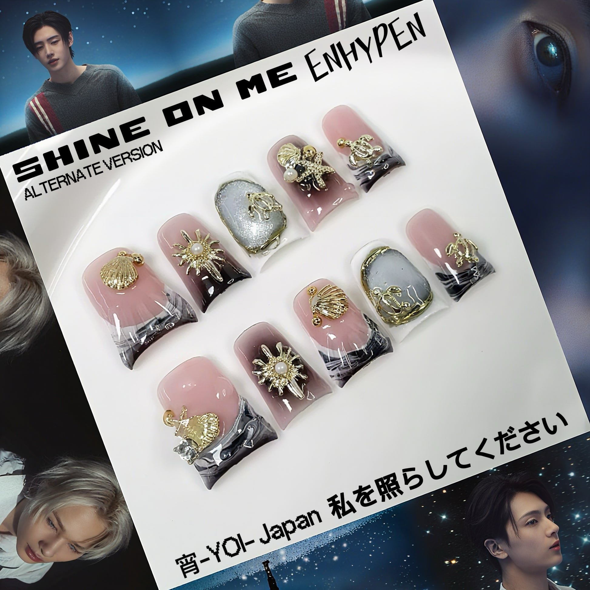 Shine on me - Alternate is a handmade press-on nails set designed by yoonmi for Engene and part of the ENHYPEN collection.
